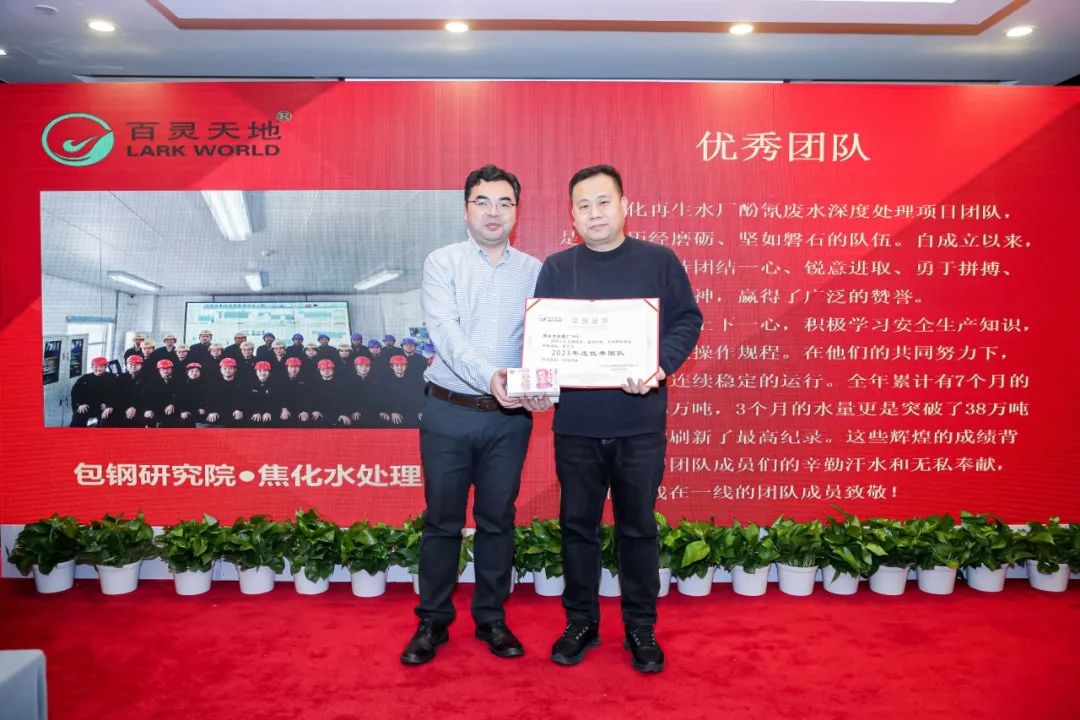 會(huì)上,公司對(duì)2023年在經(jīng)營(yíng)攻堅(jiān)、提質(zhì)增效、創(chuàng)新發(fā)展表現(xiàn)突出的集體和個(gè)人進(jìn)行了表彰,并向包鋼研究院焦化再生水廠優(yōu)秀團(tuán)隊(duì)、啜向成等先進(jìn)個(gè)人、楊慶豐等優(yōu)秀領(lǐng)導(dǎo)者頒發(fā)了榮譽(yù)證書,以此激勵(lì)全體員工繼續(xù)發(fā)揚(yáng)卓越的工作精神。王文勝董事長(zhǎng)還與各項(xiàng)目公司、各中心、各部門簽訂了2024年經(jīng)營(yíng)目標(biāo)責(zé)任書。